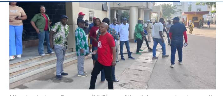 By 8:45 a.m. journalists at the scene reported a visible turnout of NLC members union affiliates and supporters many dressed in union emblems. Police and security personnel were stationed at key points ready to maintain order and ensure the protest proceeds safely along the designated routes.